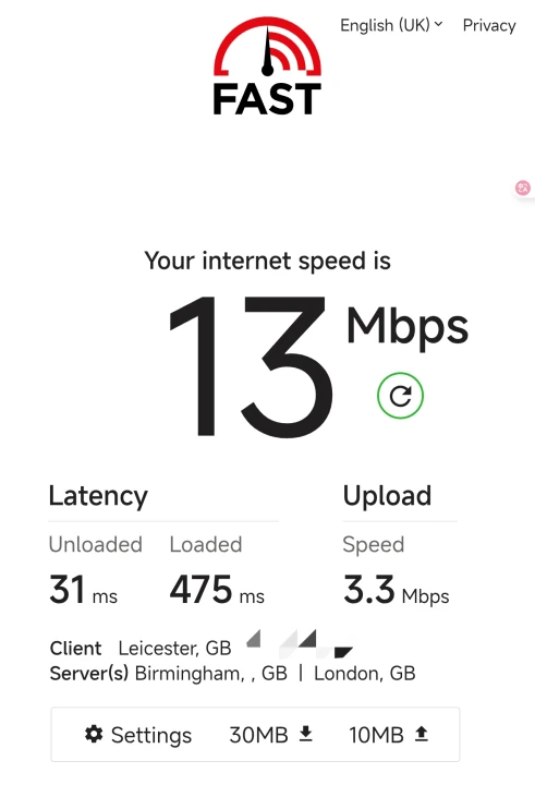 测速大概 10Mbps 左右的下行。
